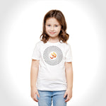 Luv My India's white pure cotton round neck T-shirt for girls embraces the spiritual power of the Om with this while reminding you of peace and enlightenment.